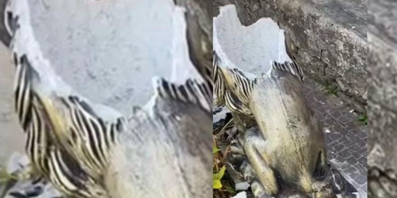 A 107ª Delegacia de Polícia (DP) investiga um ato de vandalismo em Paraíba do Sul, a destruição de uma estátua histórica que ficava na Praça da Estação desativada, no distrito de Werneck.
