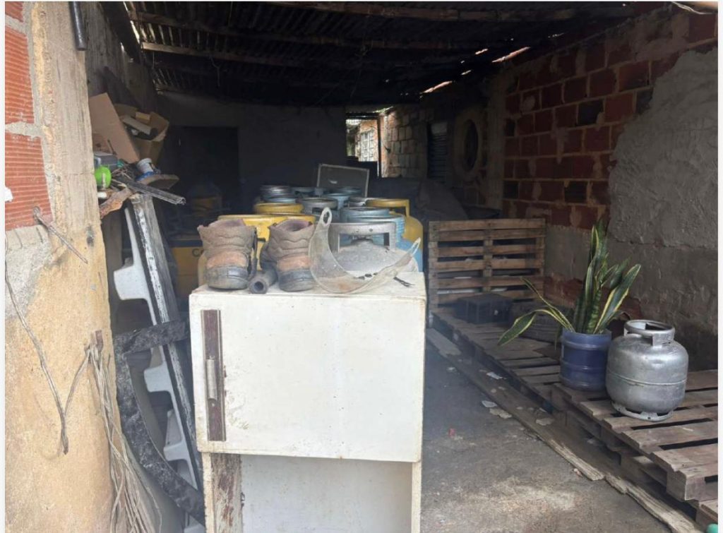 A polícia informou também que o ambiente apresentava condições perigosas e insalubres, com fiação elétrica exposta, peças de veículos e óleo automotivo armazenados junto aos botijões de gás. O imóvel fica em uma área residencial, onde crianças costumam brincar na via pública, aumentando o risco de acidentes.