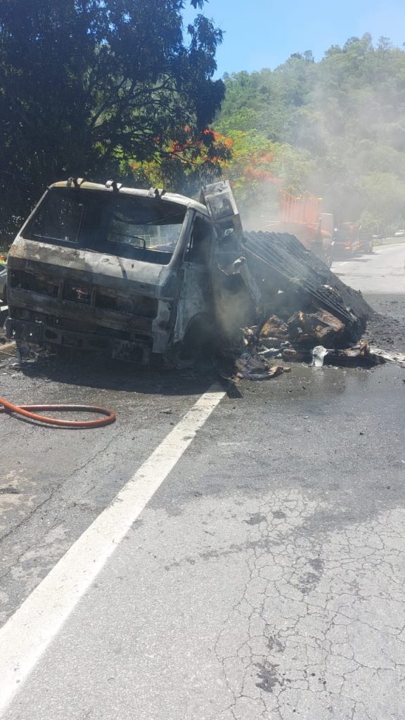 Um caminhão carregado com três toneladas e meia de carne pegou fogo na tarde desta sexta‑feira (21) na BR‑040, em Alberto Torres, Areal. Segundo informações de populares, o motorista ouviu um barulho, parou o veículo e, ao descer, percebeu que o caminhão estava em chamas.