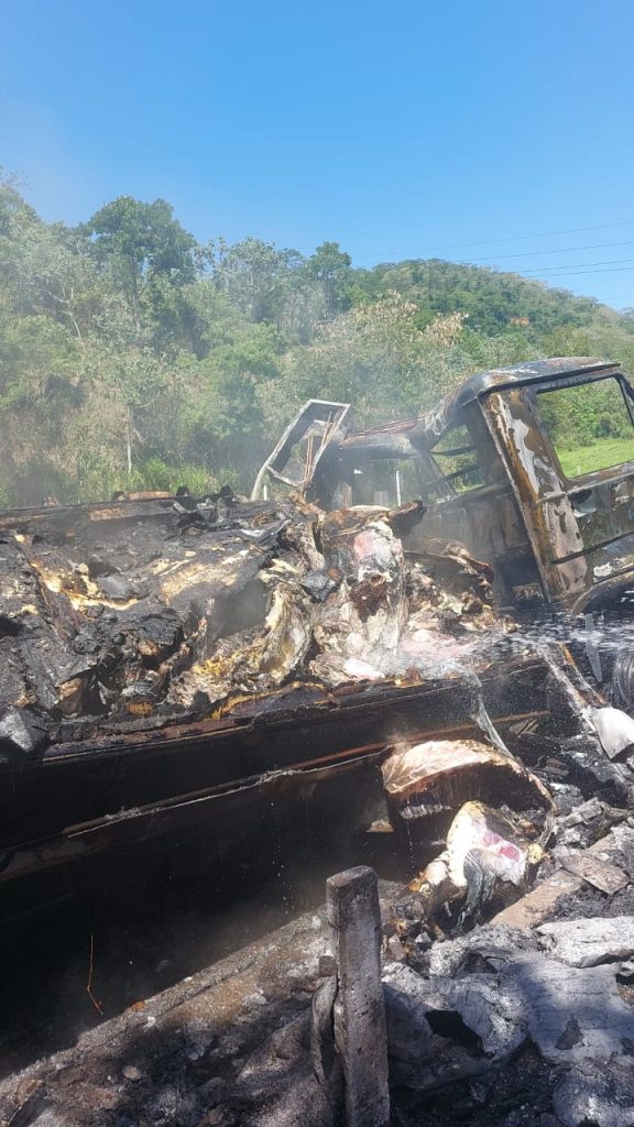 Ele tentou apagar o fogo com um extintor, mas não teve sucesso. O Corpo de Bombeiros foi acionado e as chamas foram contidos; porém, não foi possível retirar a carga a tempo. A carne foi consumida pelo fogo e o caminhão ficou destruído. Ninguém ficou ferido.