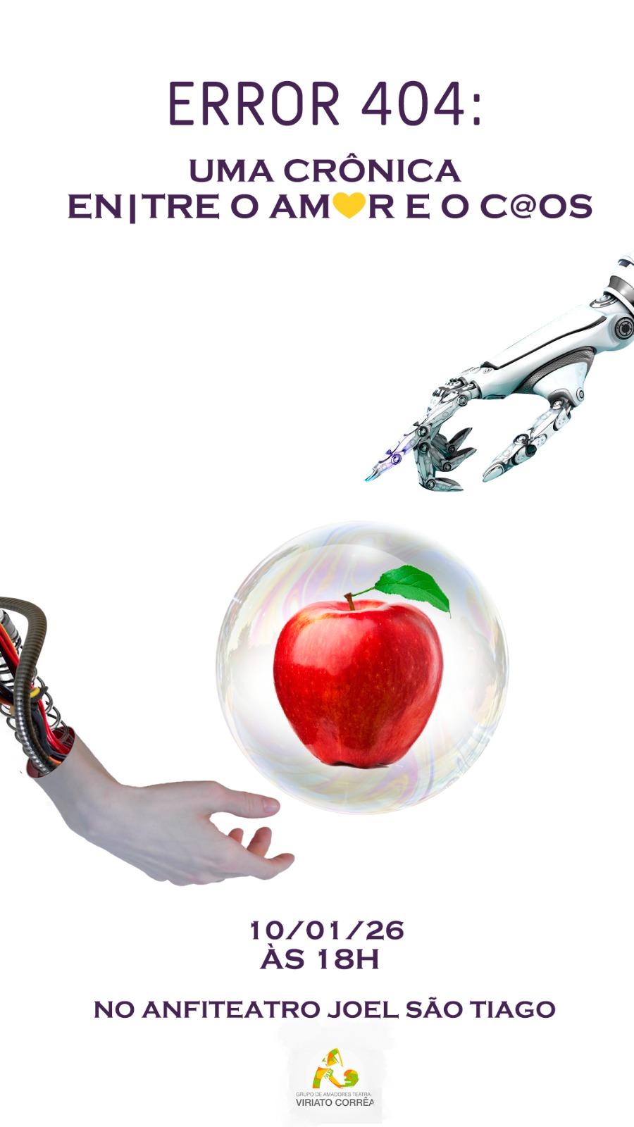 Nessa apresentação, a professora Larissa Pereira abraçou o desafio do teatro de rua, e será exposto no Anfiteatro Joel Santiago (popularmente conhecido como Chiqueirinho). A ideia é transformar em algo simbólico e atemporal, refletindo sobre laços familiares, papéis sociais e a arte como um local de refúgio, em meio às cobranças. Nesse universo cênico, a emoção deixa de ser regra e passa a representar uma falha, que é quando surge o Erro 404, provocando reflexões sobre o que significa existir em uma realidade cada vez mais automatizada.