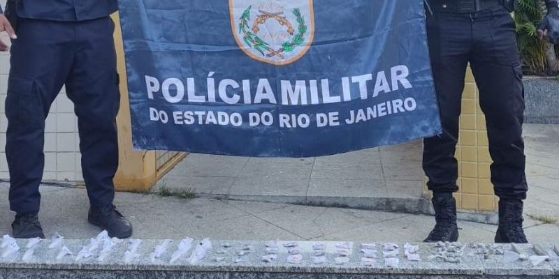 Um homem de 30 anos foi preso na tarde deste sábado (6) na Rua 07, no bairro Habitat Novo, em Três Rios. Ele estava com 24 pinos de cocaína, 31 buchas e quatro cartuchos de maconha, 20 buchas de Skank e R$ 5,00 em espécie.