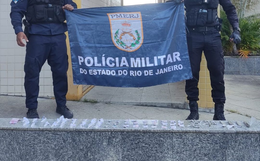 Um homem de 30 anos foi preso na tarde deste sábado (6) na Rua 07, no bairro Habitat Novo, em Três Rios. Ele estava com 24 pinos de cocaína, 31 buchas e quatro cartuchos de maconha, 20 buchas de Skank e R$ 5,00 em espécie.
