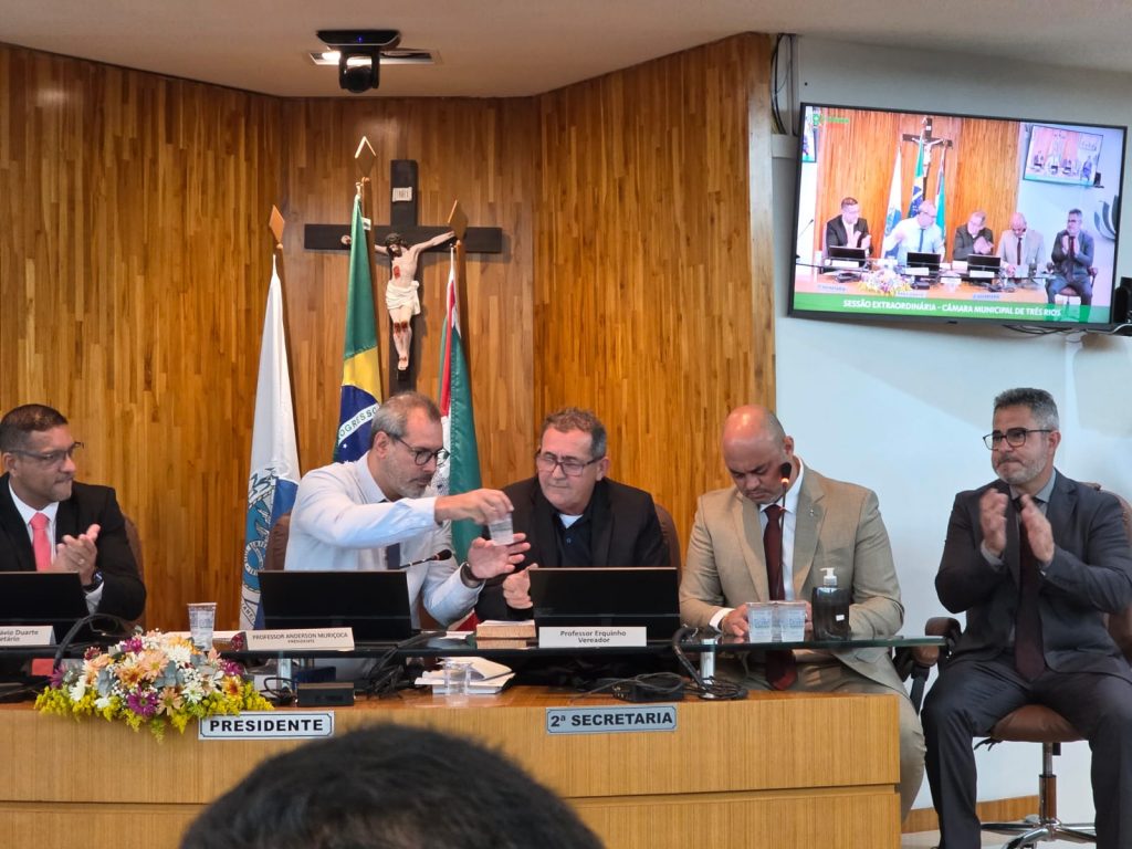 Na manhã desta sexta-feira, dia 7, ocorreu a cerimônia de posse do prefeito eleito em eleição suplementar de Três Rios, Jonas Dico (Podemos), e do vice-prefeito Arsonval Macedo, o “Liliu” (MDB). A solenidade foi realizada em uma sessão extraordinária da Câmara de Vereadores.