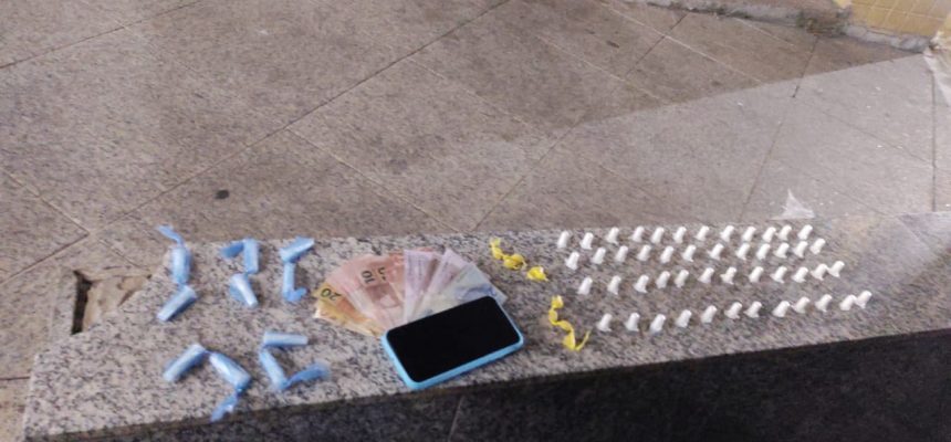 Os policiais encontraram R$ 269, 58 pinos pequenos de cocaína, oito pedras de crack e um aparelho celular.