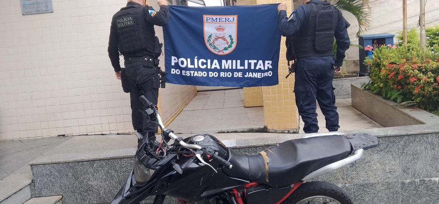 Uma motocicleta XTZ 250 Lander, cor preta, com sinais identificadores adulterados, foi apreendida na tarde desta segunda-feira (19) durante patrulhamento da PM pela Avenida Amaral Peixoto, no Centro de Areal.