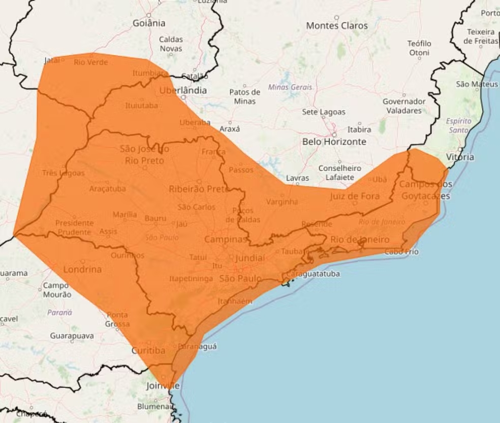 A área de abrangência do alerta envolve todo o estado do Rio de Janeiro e São Paulo – estados mais afetados – mas também inclui parte da região Sul, Sudeste e Centro-Oeste do país. Segundo estimativas do Inmet, a onda de calor elevou as temperaturas em cerca de 5 celsius.
