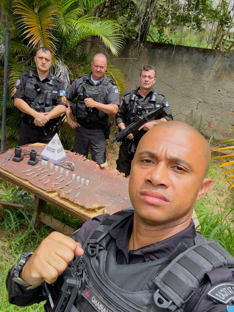 Policiais militares realizaram na manhã deste sábado (25) uma ação em um imóvel situado na Rua Bento Gonçalves Pereira, em Werneck, Paraíba do Sul, e apreenderam um simulacro de pistola com carregador, uma garrucha calibre .32, dez balões de cocaína, dezessete tiras de maconha, uma faca, dois rádios comunicadores e duas bases de carregamento.