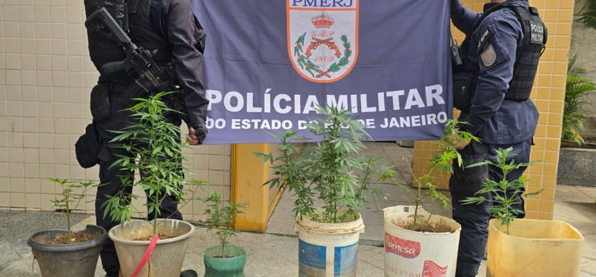 Policiais militares apreenderam, na tarde desta quinta-feira (8), pés de maconha em uma residência localizada na Rua Palmira de Carvalho, no bairro Jardim Primavera, em Três Rios.