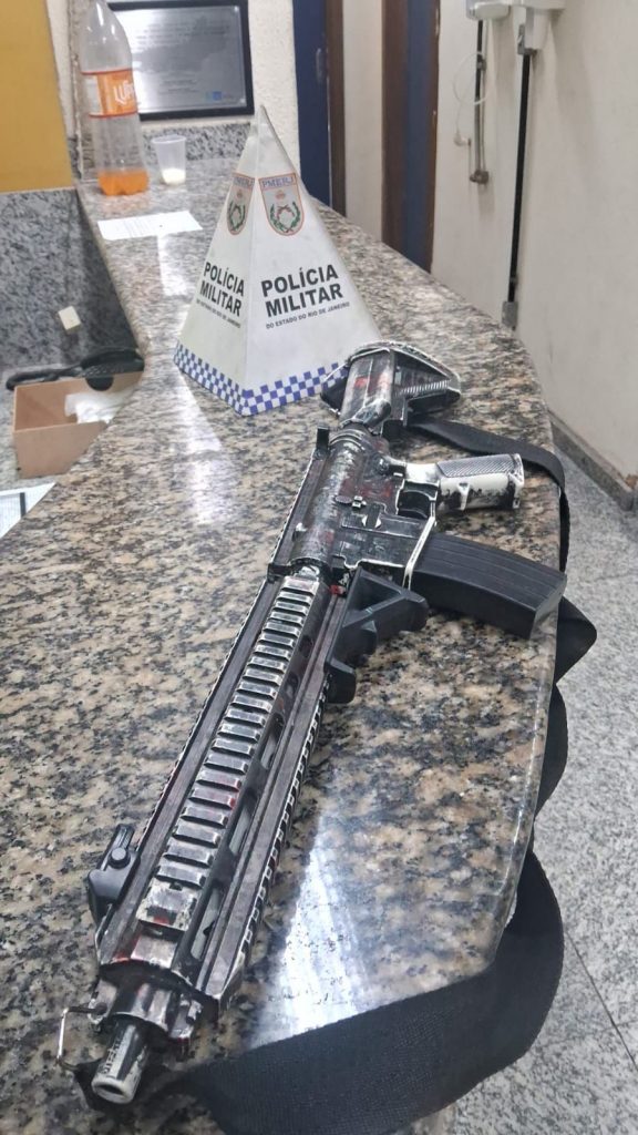 A polícia apreendeu, na tarde desta terça-feira (30), um simulacro de fuzil durante patrulhamento no bairro Barão de Angra, em Paraíba do Sul. A ação ocorreu após denúncia de violência doméstica e ameaças com emprego de arma, relacionadas a uma ocorrência registrada anteriormente e que resultou na concessão de medida protetiva à vítima.