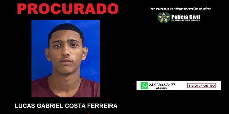 Quem tiver informações sobre o paradeiro de Lucas Gabriel, conhecido como “LC” ou “Filhão”, pode denunciar anonimamente pelo WhatsApp da 107ª DP: (24) 98833‑8177.