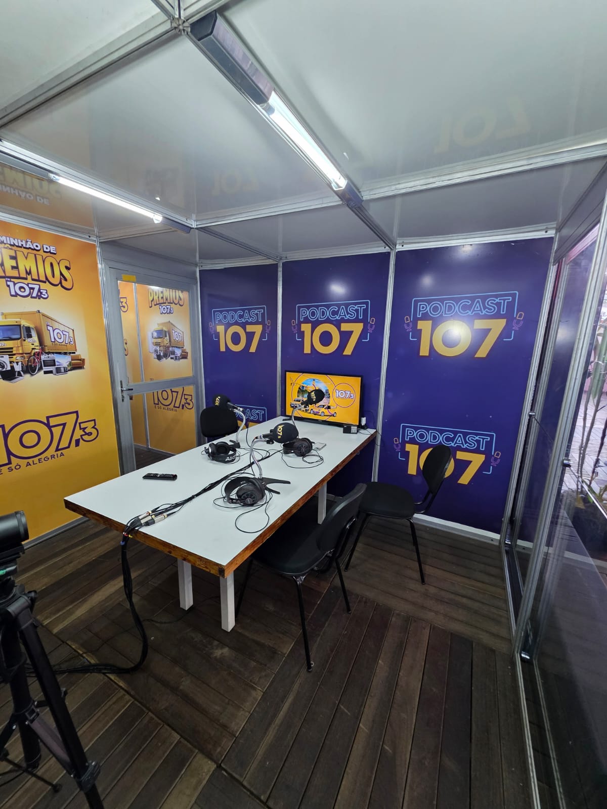 O Grupo 107 esteve presente com um estande personalizado, que chamou atenção de quem passava por perto. Foi montado um estúdio, que vai ser o piloto de um novo projeto: o “Podcast 107”.