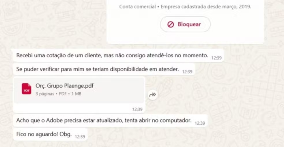 A nova versão do Sorvepotel mantém a abordagem por meio de mensagens e anexos maliciosos via WhatsApp Web, mas houve um refinamento na estrutura do texto que agora inclui também uso de emojis. A nova mensagem pode conter comprovantes de pagamento ou orçamentos de empresas, acompanhadas do pedido para “tenta abrir no computador”.