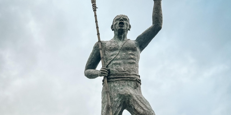 Foto: Estátua de Zumbi dos Palmares em Porto Alegre. Registro de @laurasito no X.